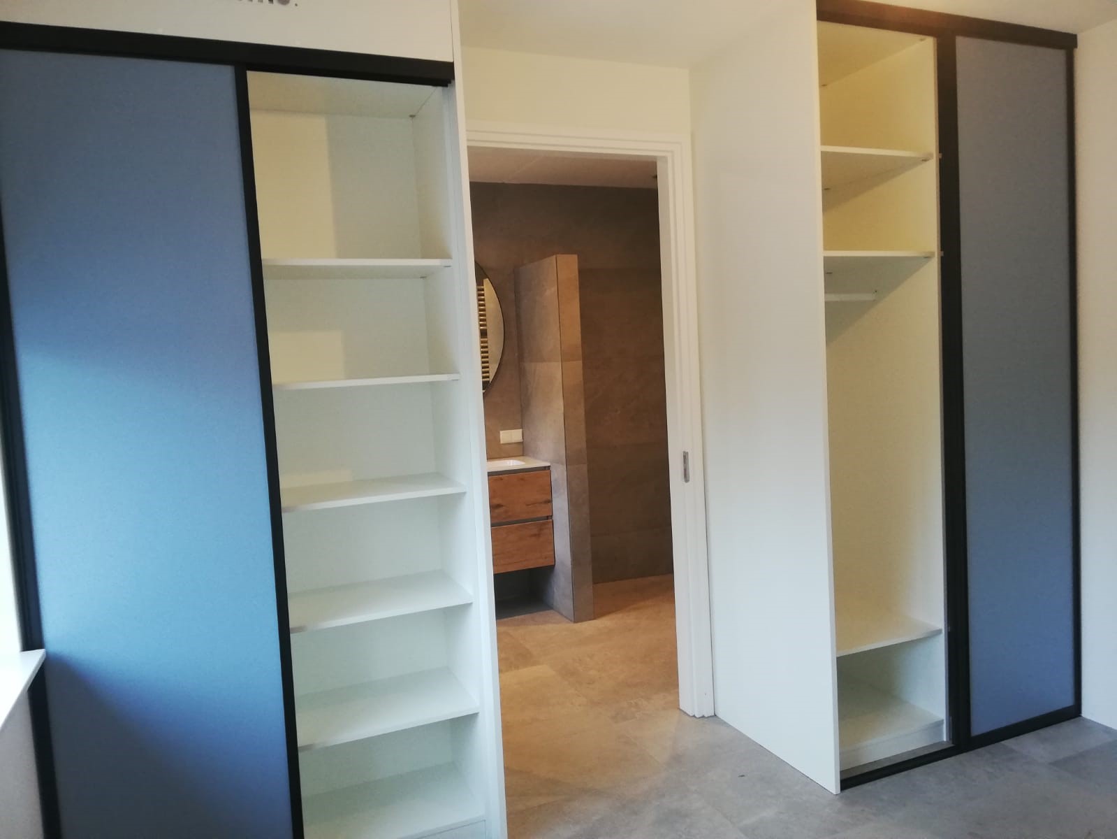 Begin van de maand december hebben we twee mooie kasten geplaatst in Zuidhorn, aan beide kanten van een doorloop naar de badkamer. Betreft een Raffito kast, schuifdeur model Stretto, kleur Denim Blauw, omlijsting mat zwart.
