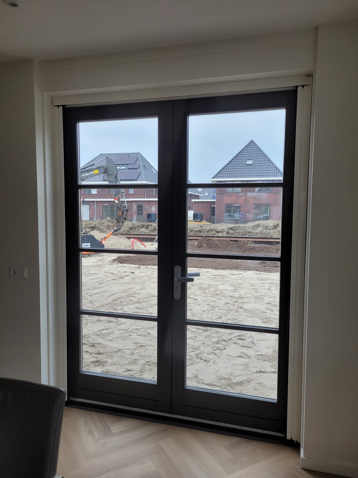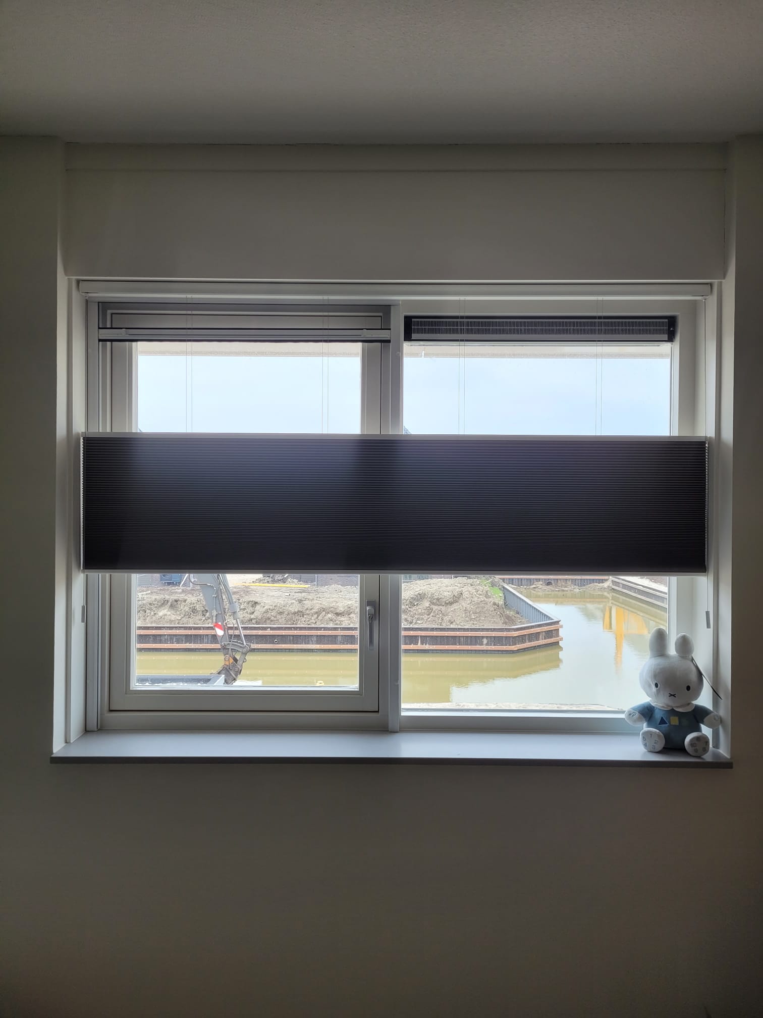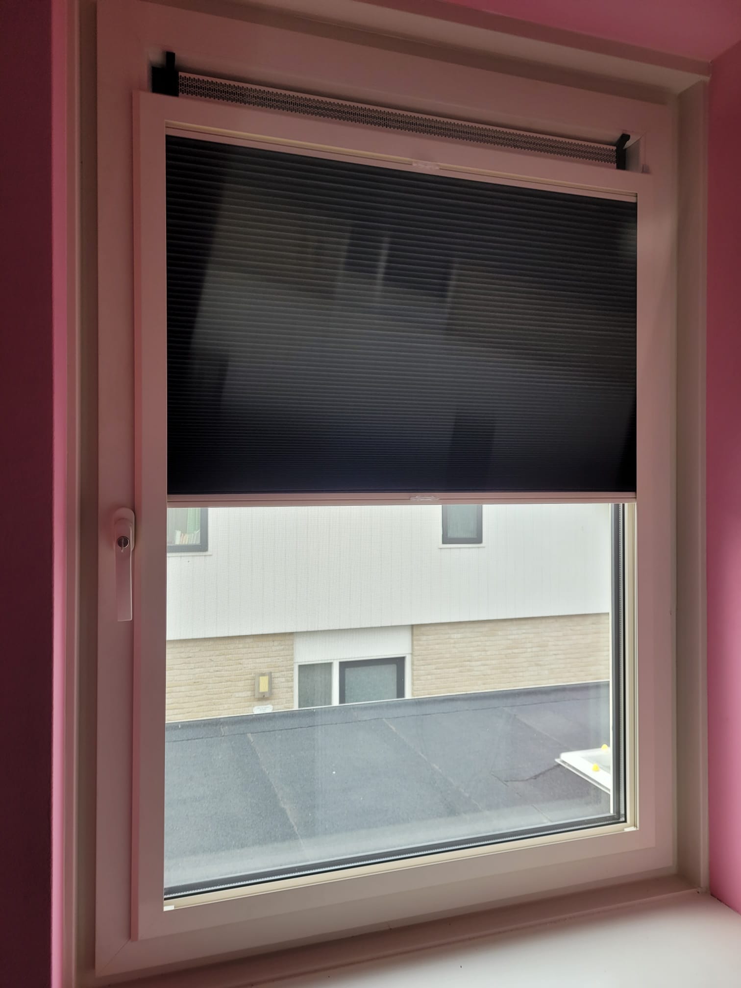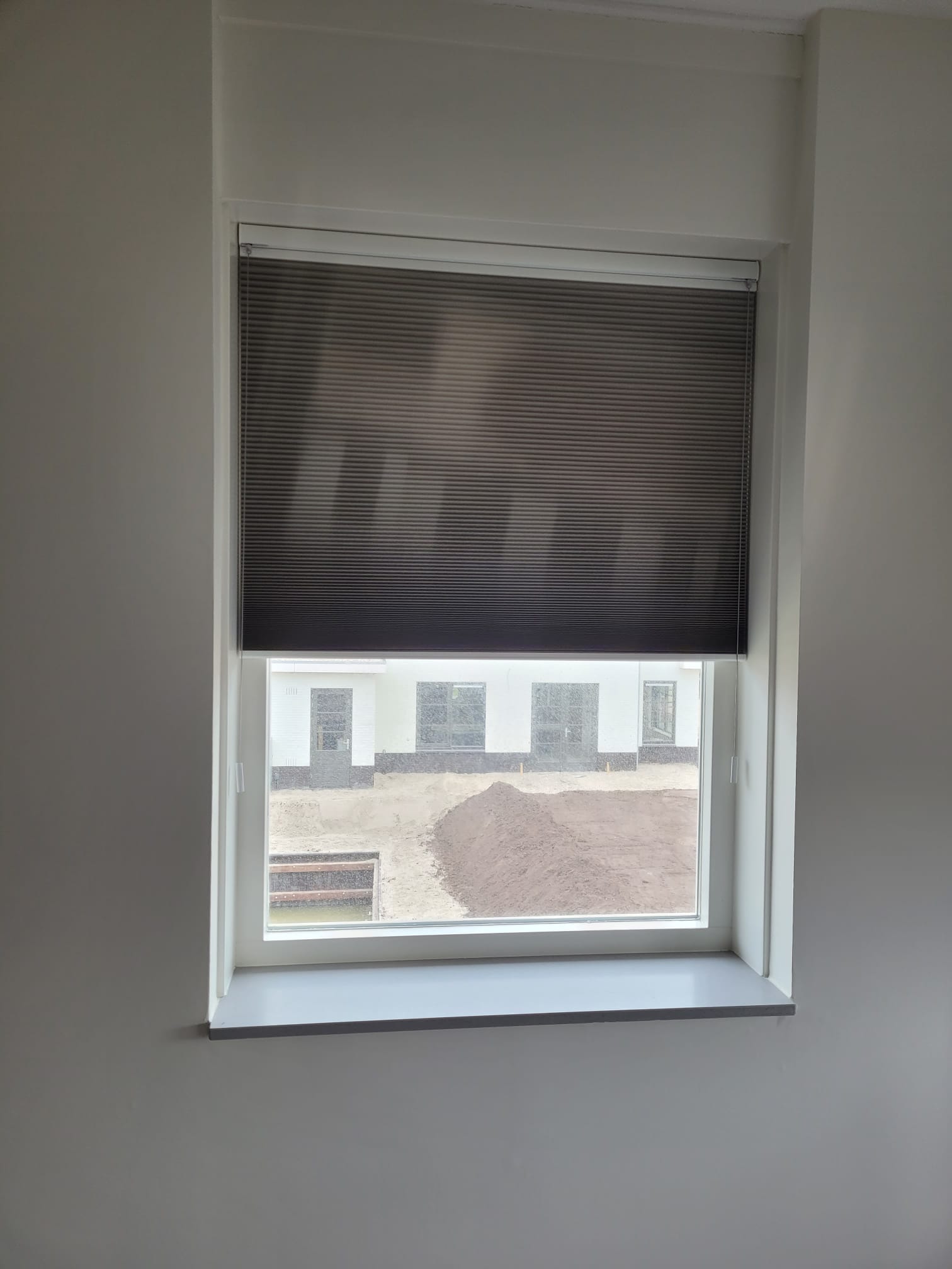 Deze nieuwbouwwoning voorzien van meerdere duettes en een plissé hordeur.