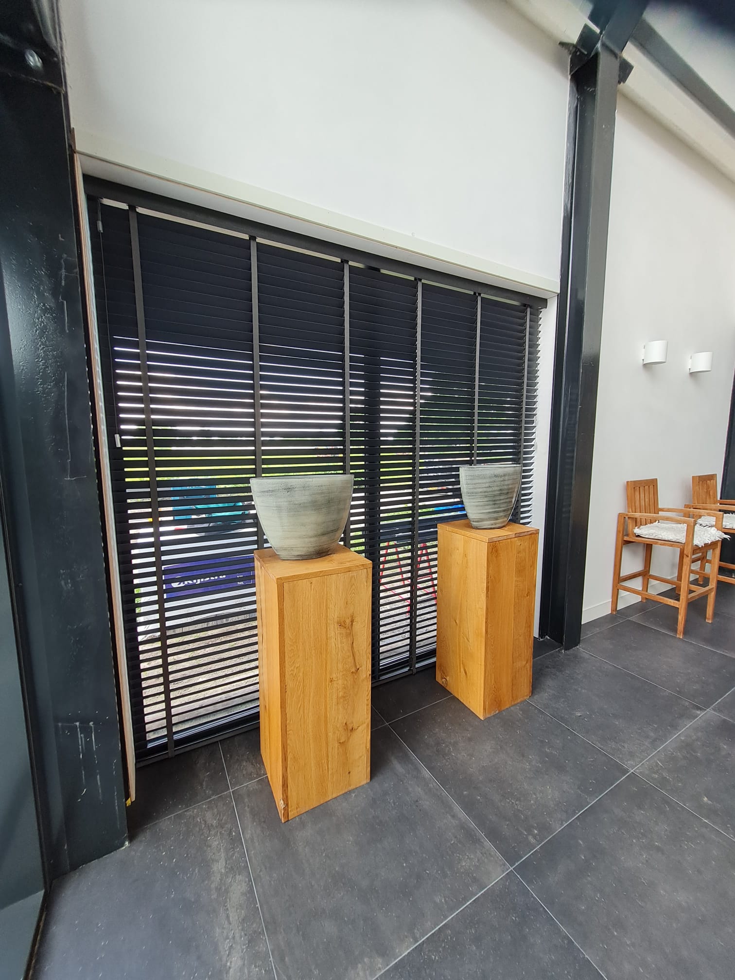 Houten jaloezieën, het is dé raamdecoratie voor meer sfeer in huis op een moderne en eigentijdse manier. Houten jaloezieën, geven een woonkamer of slaapkamer een natuurlijke en sfeervolle uitstraling. Ze passen perfect in ieder interieur, ongeacht of je een industriële, landelijke of moderne woonstijl hebt. Deze zwarte houten jaloezieën zijn ideaal voor een stoer interieur.