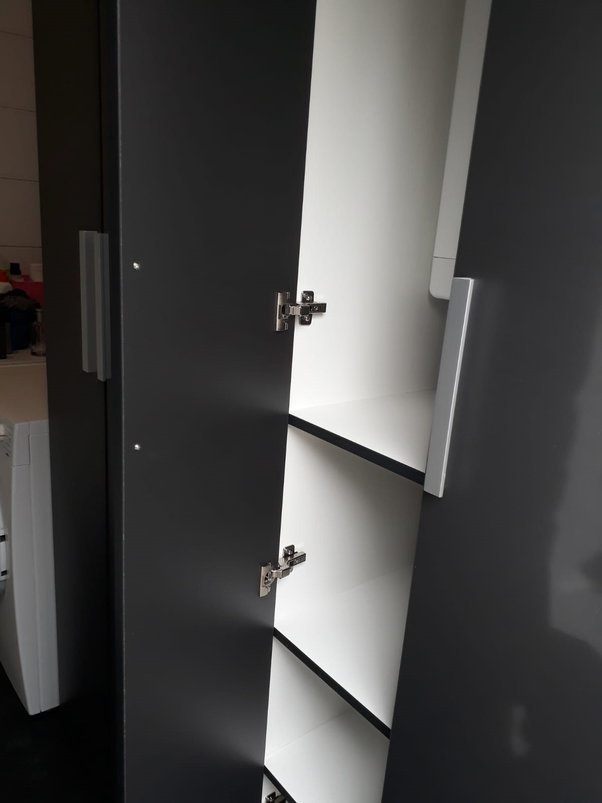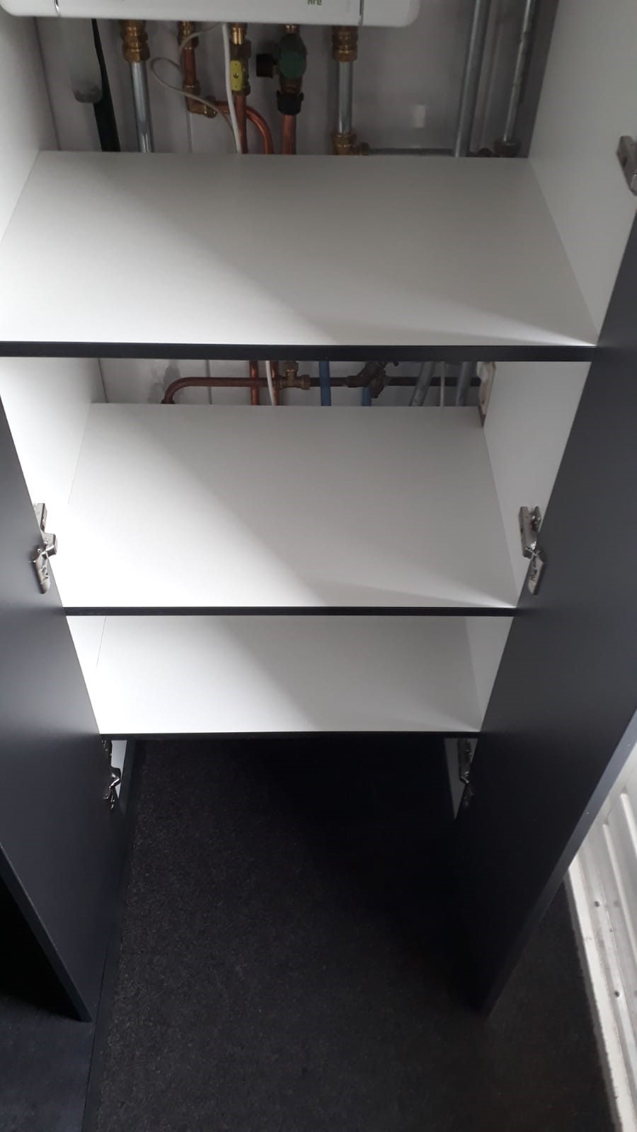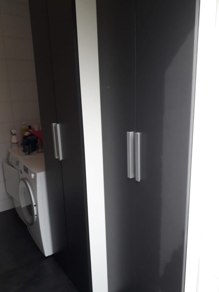 Bij deze familie in Zwaagwesteinde hadden we al een PVC vloer gelegd. En we weten inmiddels, een tevreden klant is vaak een trouwe klant. En zo ook dit keer. Deze familie wilde graag een kast op maat in hun bijkeuken. Dit om extra opbergruimte te creëren, maar ook om de waterontharder, de CV ketel en de bijbehorende leidingen weg te werken. Daarnaast moet de buitendeur natuurlijk ook optimaal blijven functioneren, vandaar dat een verstek in de kast een must was. Zie op de foto’s het prachtige resultaat: van 3D ontwerp naar de gerealiseerde kast.
