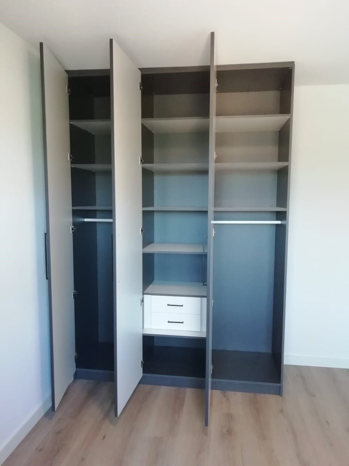 Bij deze klant in Groningen waren we al eerder geweest. Meerdere kasten en raamdecoratie zijn hier door het Maatwerkteam gemonteerd. Afgelopen week hebben we hier 2 kasten op maat aan toegevoegd. Zijn twee kasten met dezelfde stijlvolle deuren en kleurstelling om eenheid in de woning te creëren.