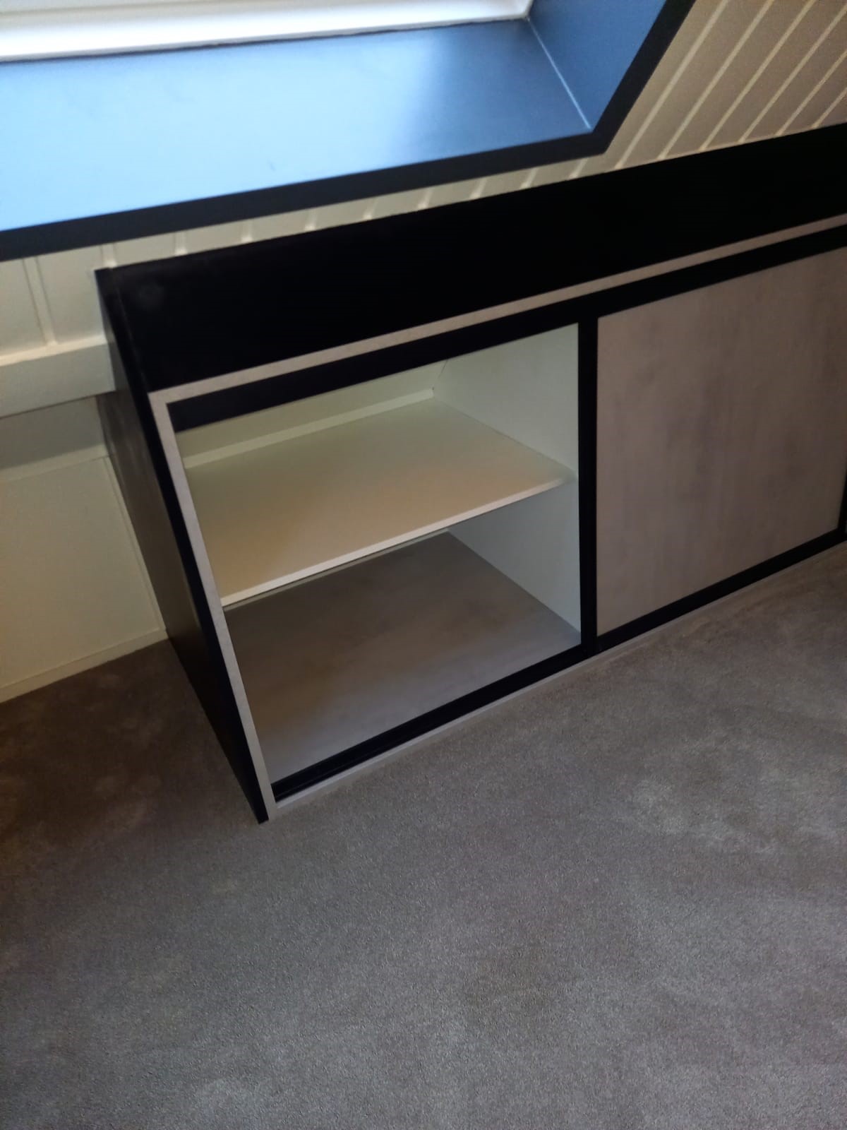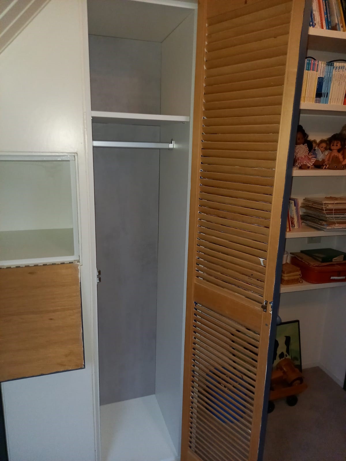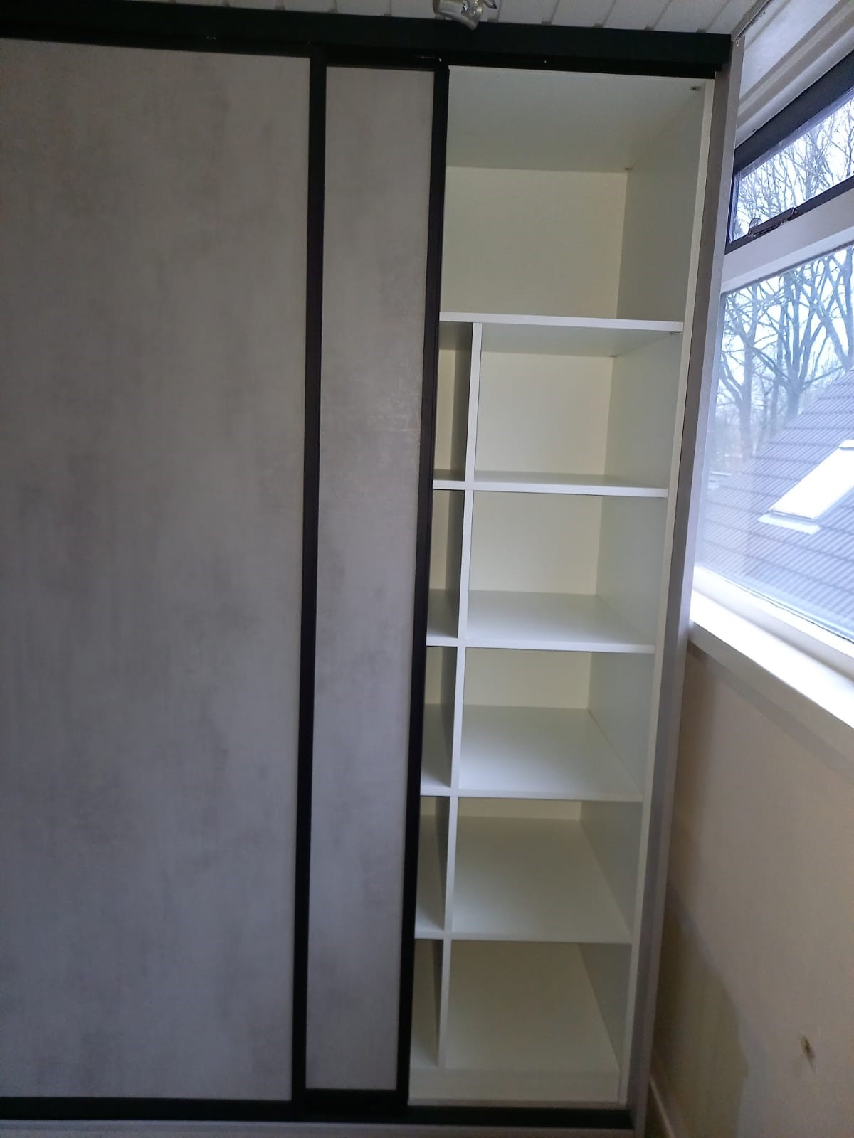 In de reeds aanwezige kasten hebben wij panelen en roedes gemonteerd, zodat deze ruimte ook weer optimaal benut kan worden.
