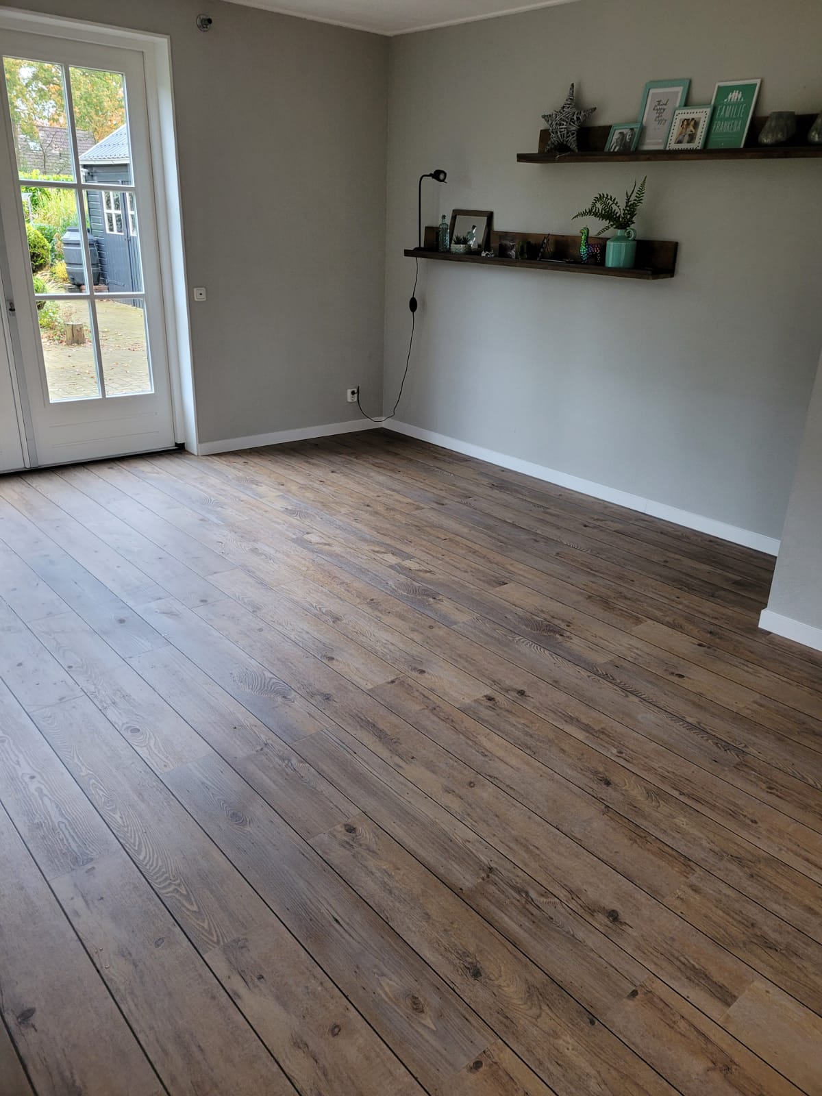 Deze vloer is afgewerkt met een 6cm hoge plint.