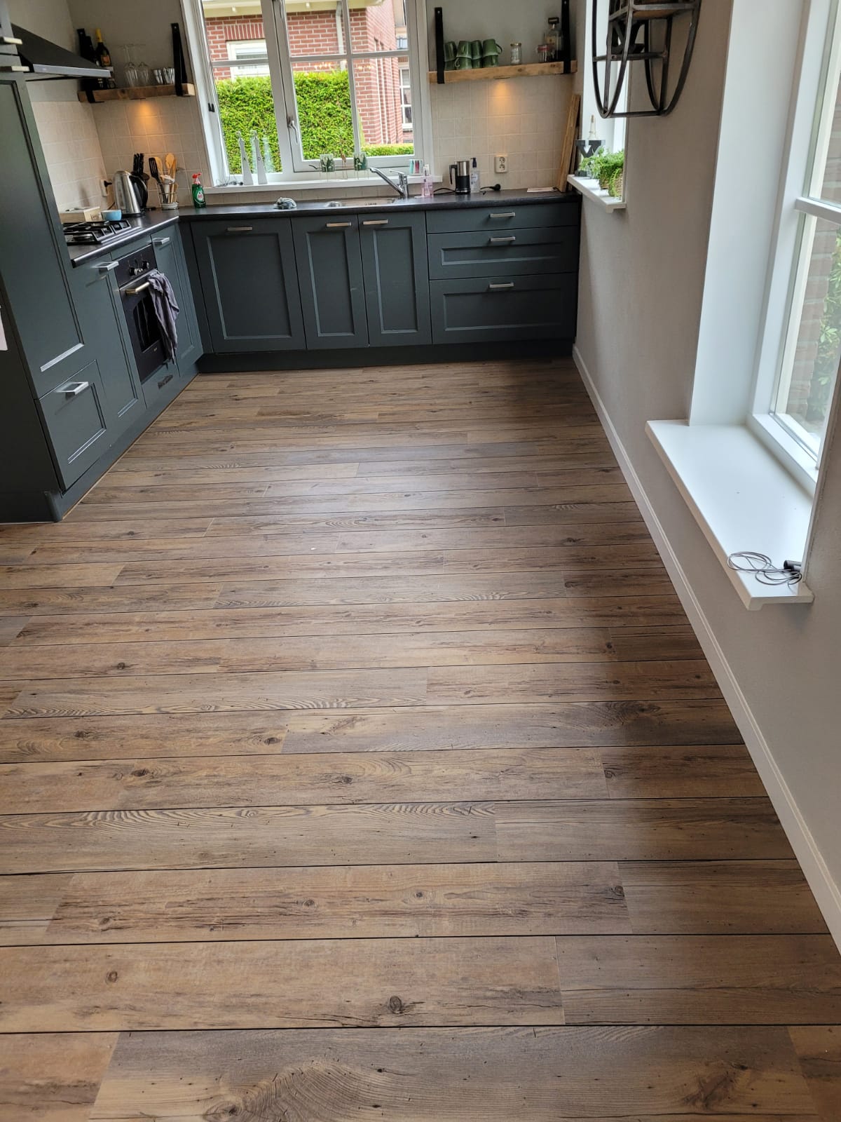 Deze PVC vloer mocht ook in Opende gelegd worden. De klant heeft gekozen voor een hoogwaardige PVC van Mflor. Dit is een type van de Authentic serie en de kleur is Shade. Met bies, om de echte (authentieke) hout-look na te bootsen.