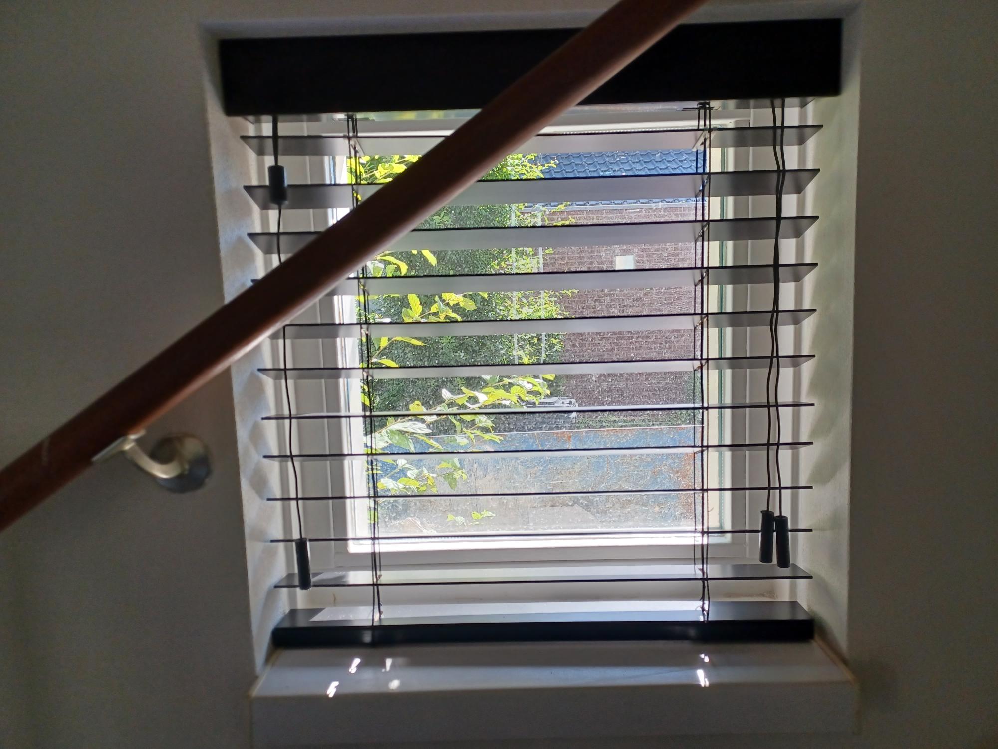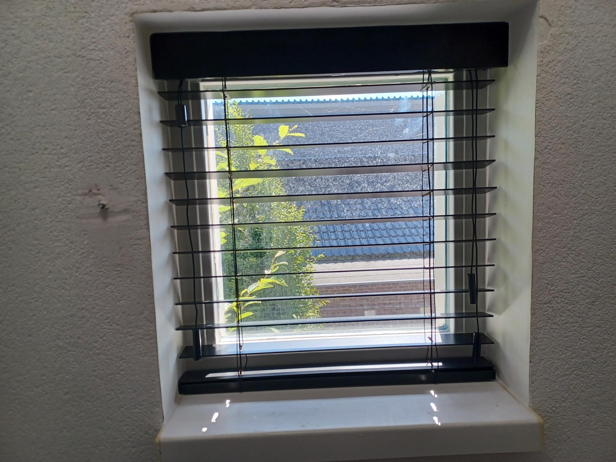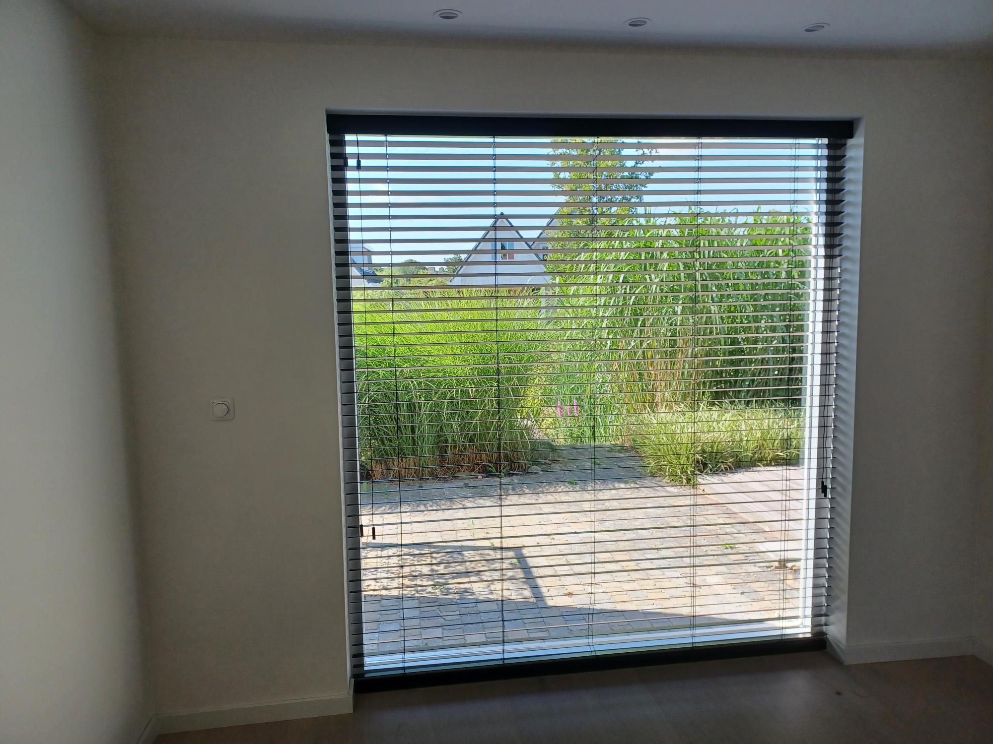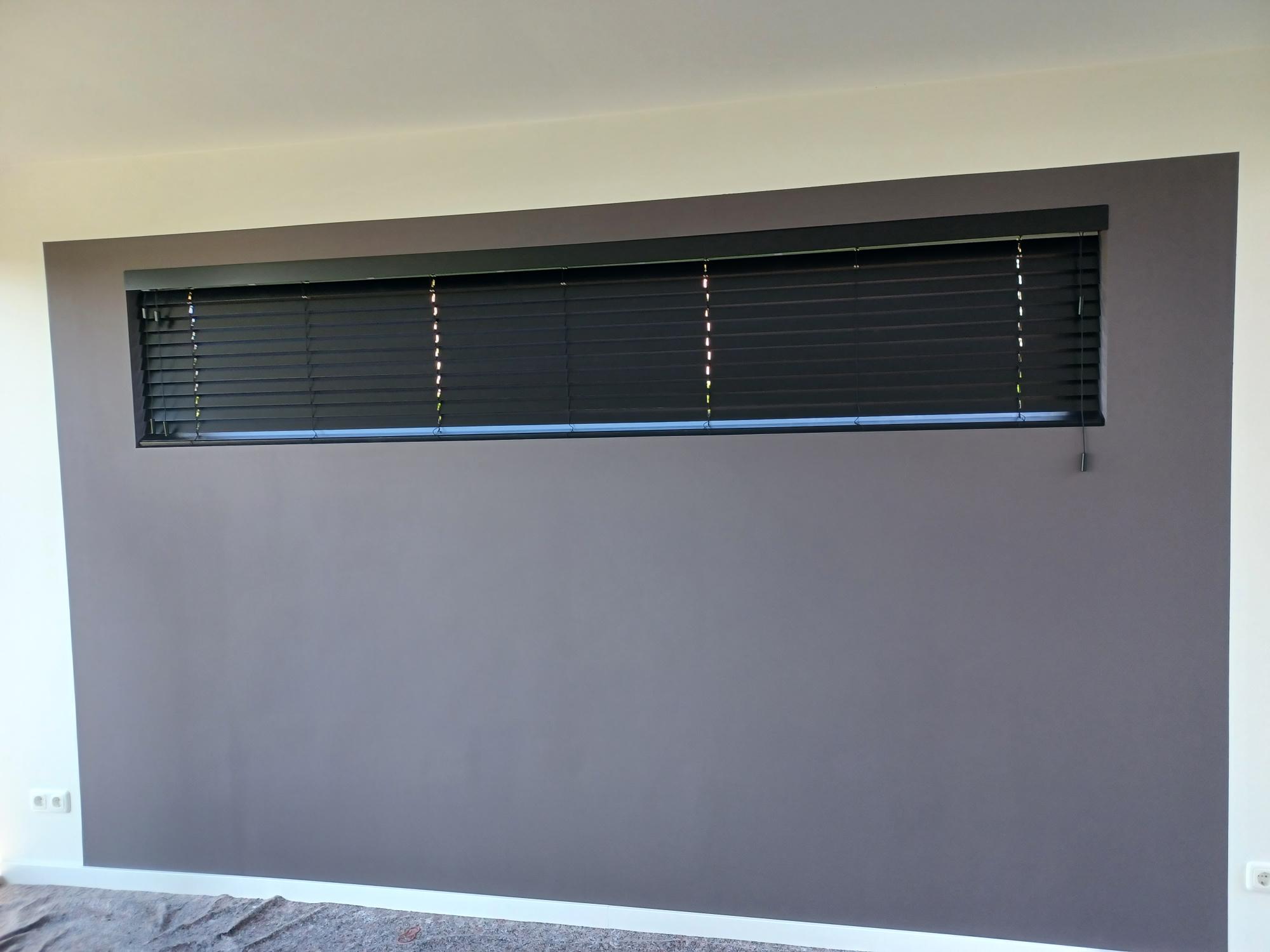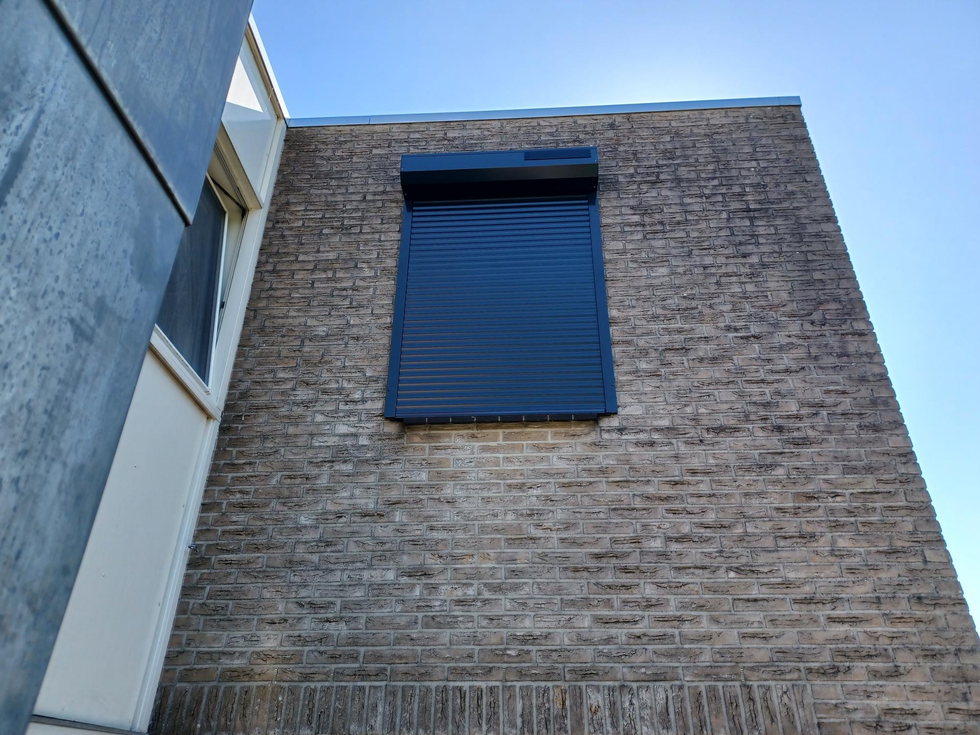 Hier mochten we rolluiken, houtenjaloezien en easy-fit systemen plaatsen. Solar rolluiken cd942 van Sunpoint in de kleur ral: 7016. Houtenjaloezien van merk Hr-design, kleur: X217. Easy fit systemen zonder te boren en te schroeven in de kleur zwart.