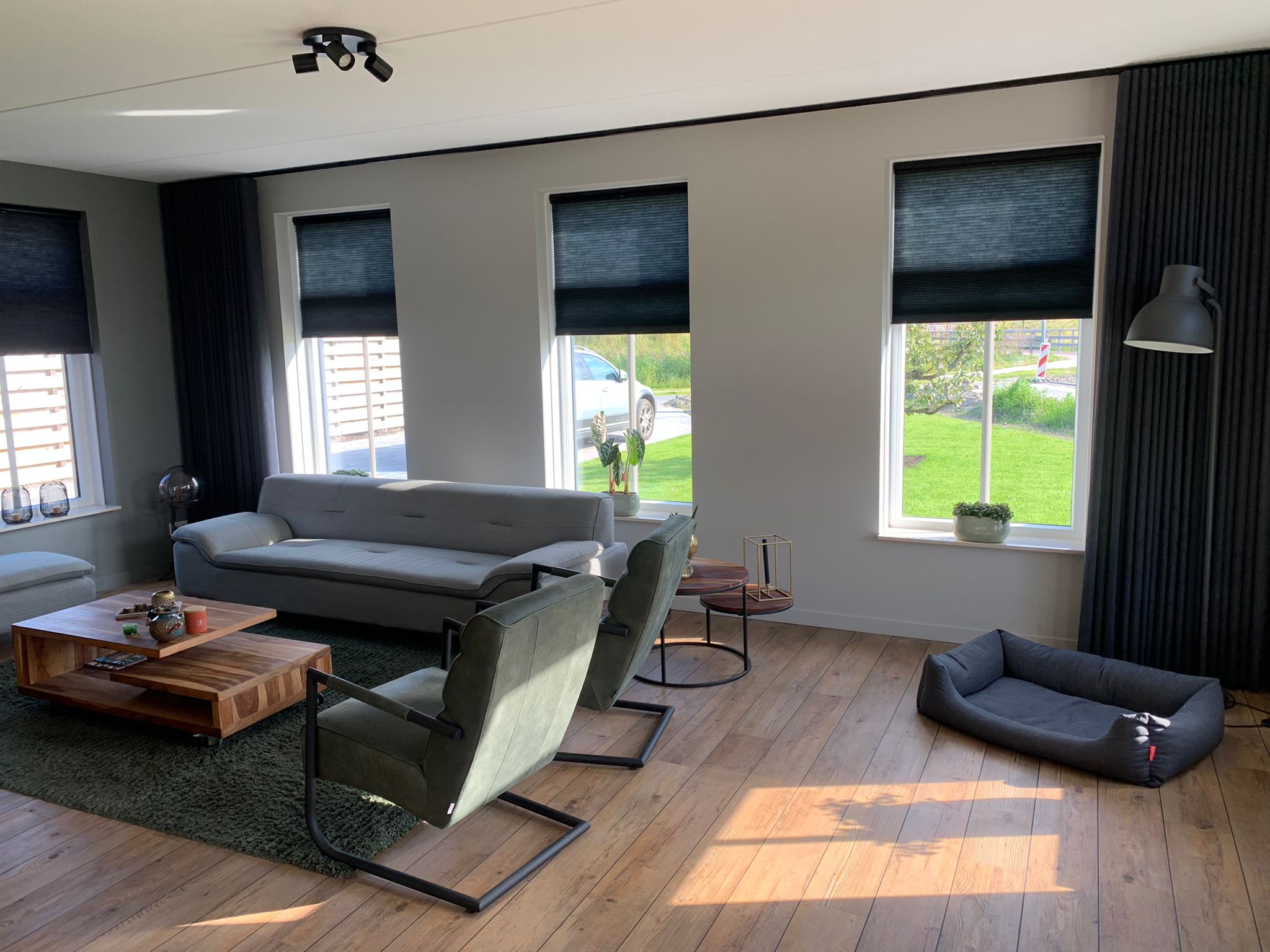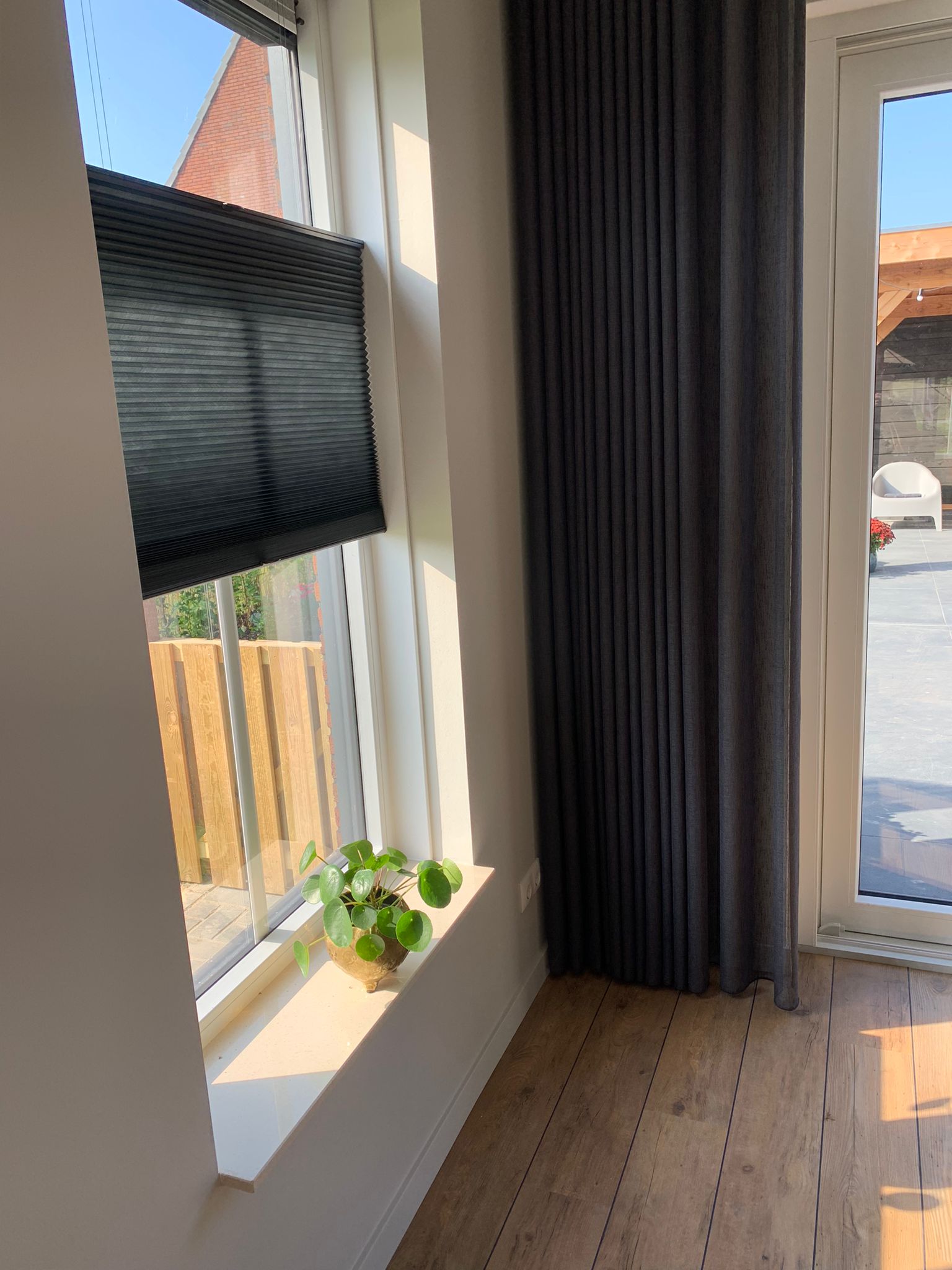 Ook de raamdecoratie is aandacht aan besteed. De gehele boven- en benedenverdieping mochten we voorzien van raamdecoratie. Onder zijn duettes met een light rise systeem geplaatst. Makkelijk bedienbaar. Geven een luxe en strakke uitstraling aan het geheel.