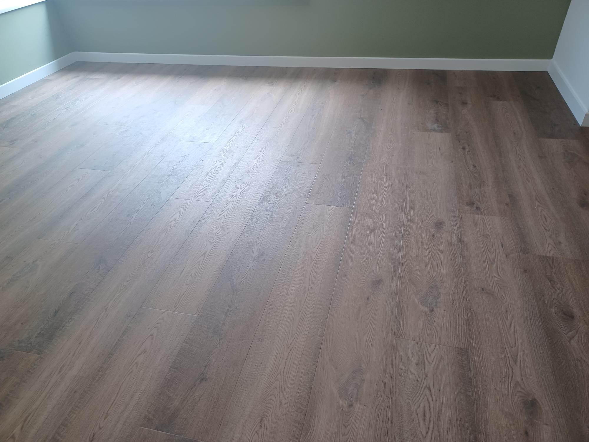 Op de foto’s zien jullie een pvc vloer van Bodiax rechte plank Longa dry-back Carlington oak afgewerkt met een hoge plint. Deze vloer is gelegd op de begane grond en de vloer is ook door gelegd op de trap met een mooie afgewerkte zwarte antislipstrip. Dit is ook een hele mooie vloer hoor! Een geslaagd project in Leek.